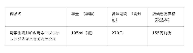 『野菜生活100』季節限定シリーズから「野菜生活100広島ネーブルオレンジ&はっさくミックス」を2026年3月17日(火)から2026年6月上旬まで期間限定にて全国で発売いたします(在庫がなくなり次第、販売終了)。