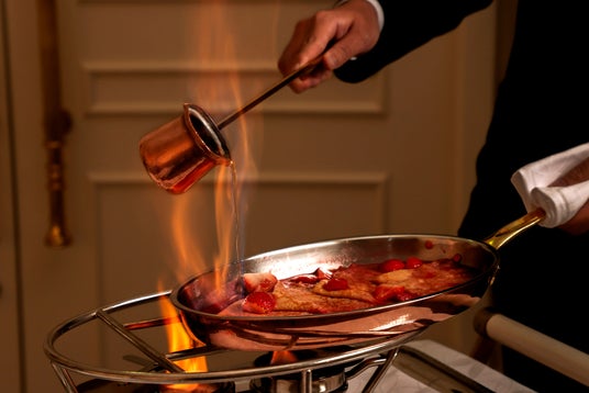 目の前で仕上げる手捌きも魅力のフランベサービス