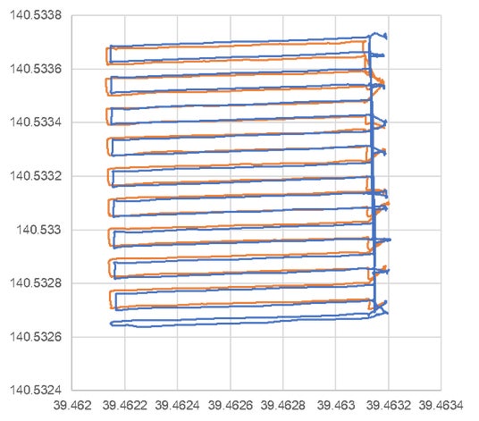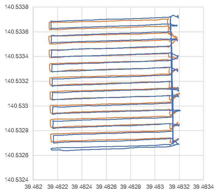 センチメートル級測位補強(CLAS)を活用した、高精度自動飛行による水稲直播技術です。