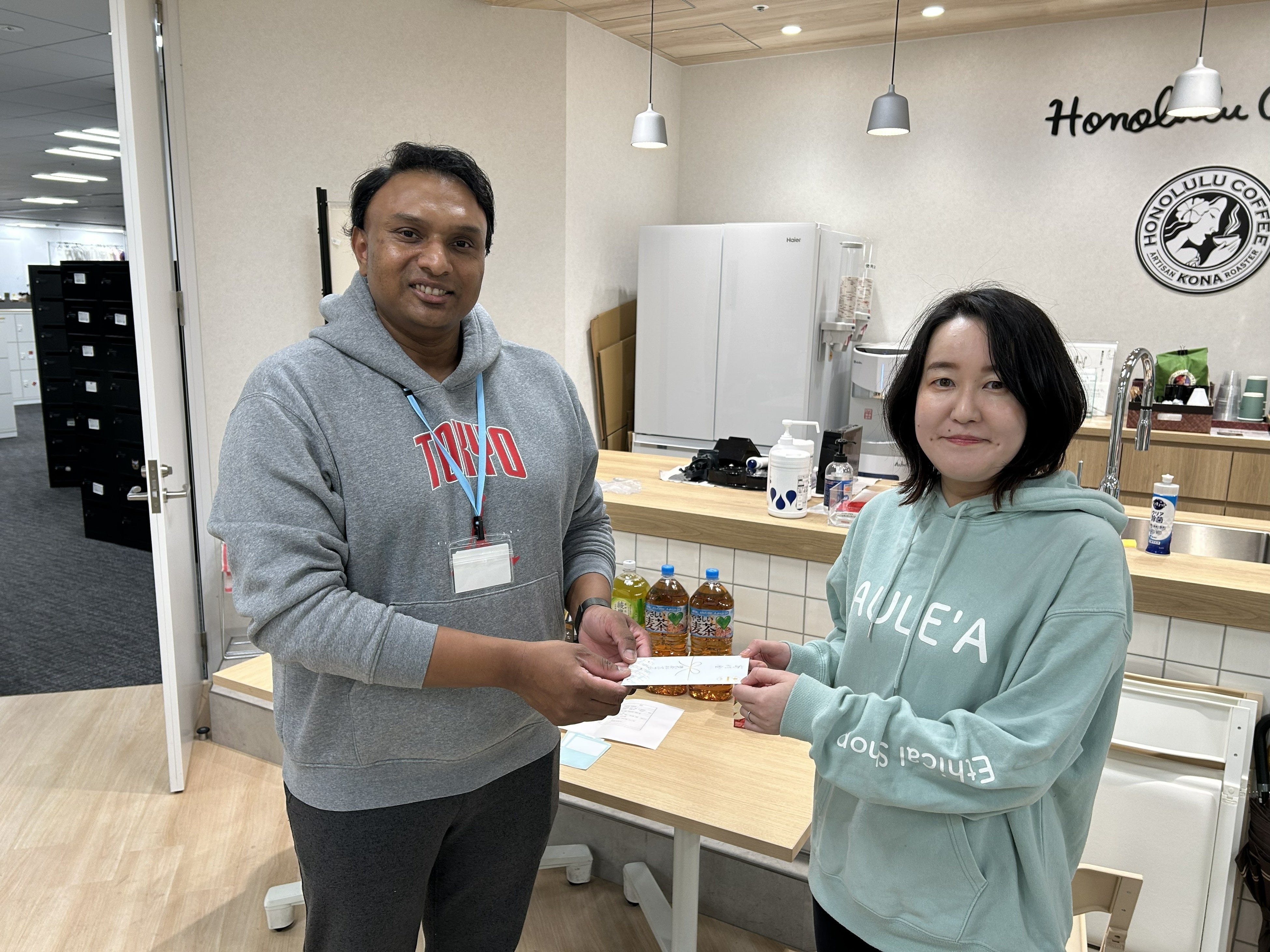 こども食堂開催前に寄付金の受け渡しを行いました