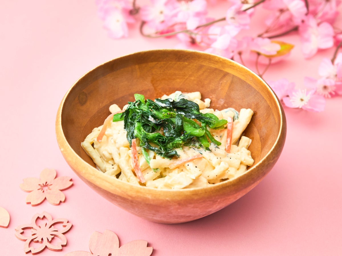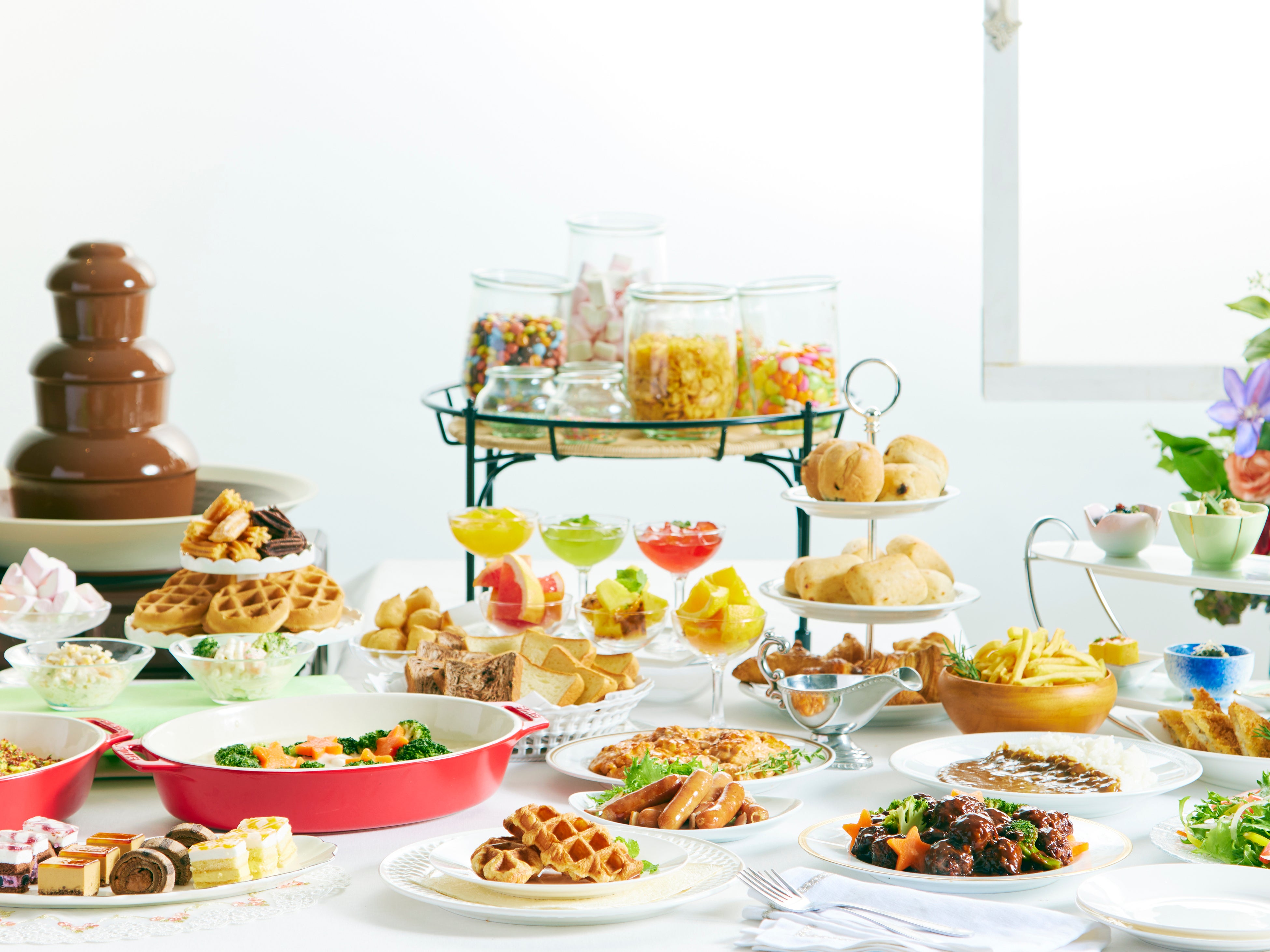 また、「蒸し鶏と豆のコブサラダ」や「サーモンとほうれん草のマカロニクリームソース」など、バランスにも配慮した料理を取り入れ、大人もお子さまも安心して楽しめる朝食を実現しています。さらに、デザートには春気分を高める「いちごのフルーチェ」も登場します。
