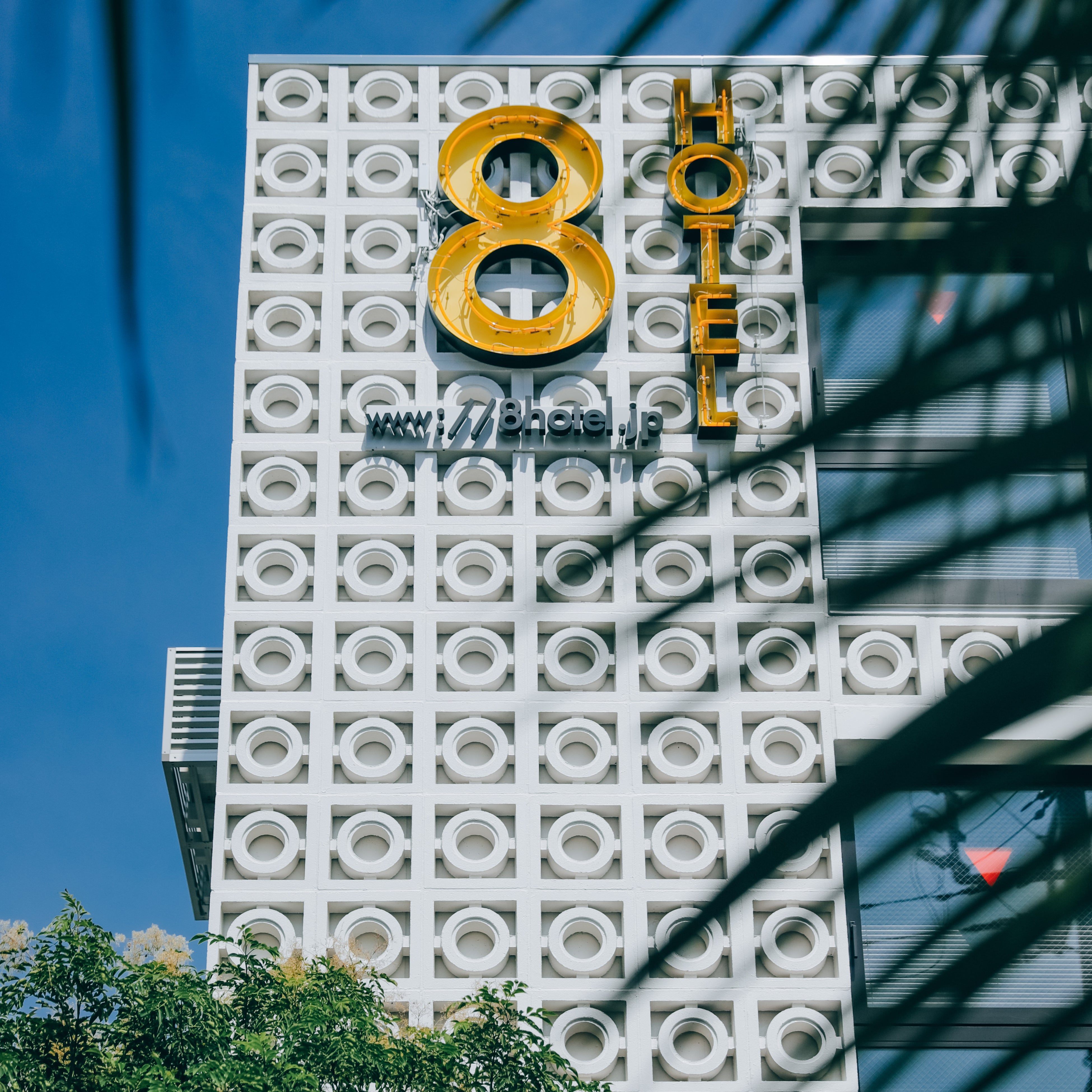 8HOTEL CHIGASAKIまるで海外にあるモーテルのような造りをした 8HOTEL CHIGASAKI。プールを囲うようにフロント、ラウンジ、サウナが配置され、非日常な空間が広がります。サウナやプールの利用に加え、ラウンジでの軽食やととのいスペースでの会話など、思い思いの過ごし方が可能です。夜はライトアップされ、ナイトプールとしてもお楽しみいただけます。