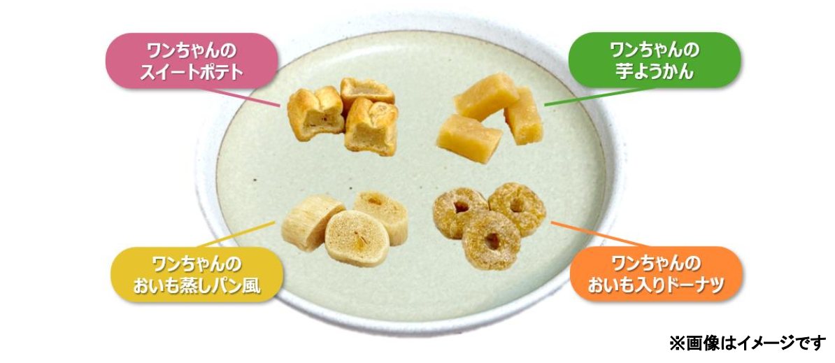 スイートポテトやドーナツなど人間の定番おやつの見た目を再現し、飼い主様と愛犬が「おそろい気分」で楽しめます。