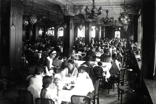 現在まで外壁や内装の一部を継承する“ヴォーリズ建築”の大丸ブロックが完成したのは1933年(昭和8年)。御堂筋の拡幅と地下鉄開通に合わせオープンし、大大阪時代のランドマークとして親しまれてきました。当時の大丸心斎橋店 最上階の7階には食堂が設けられており、多くの人で賑わいを見せました。7階には和風食堂、洋風食堂のような大食堂に加え、小部屋で家族連れや少人数の会食の利用に適した特別食堂も設けられていました。家族が集う昭和の大食堂。現在の大丸心斎橋店では、令和の食の集い場として地2階「心斎橋フードホール」がご利用いただけます。1933年(昭和8年) 7階 和風食堂