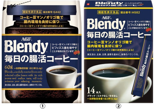 1.2.いつもの「ブレンディ(R)」の味わいはそのままに、腸内環境を良好に保つコーヒー豆マンノオリゴ糖入りの機能性表示食品です。飲用シーンや生活スタイルに合わせて袋タイプやスティックタイプなど形状をお選びいただけます。