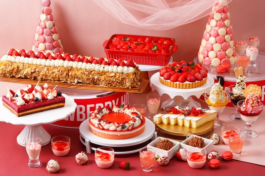 5月12日までは華やかないちごスイーツが並ぶ