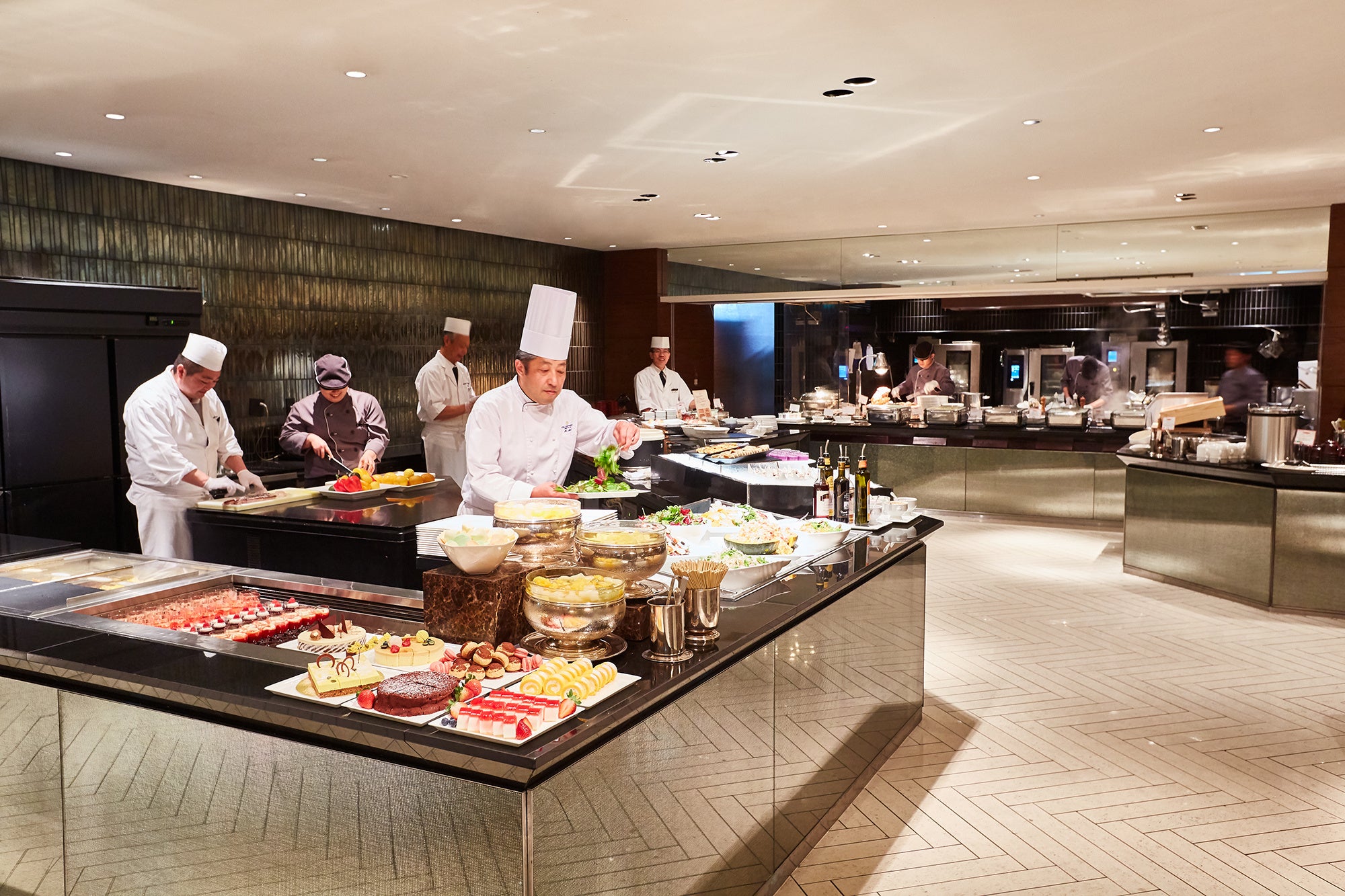 「一品ひと品がスペシャリテ」、「シェフの心が息づく躍動感あふれる海辺のオールデイダイニング」がコンセプトのシェフズ ライブ キッチンは、「ヘルシー・ビューティー・フレッシュ」をテーマにした美味しいメニューを心ゆくまでお楽しみいただけ、元気で美しくなれるようなシェフの心遣いを感じていただけるレストランです。こだわっているのは“出来立ての美味しさ”と“心に残る楽しい時間”を提供すること。常に新しいシーンをご提案できるよう、美味しさと楽しさを追求し続けています。
