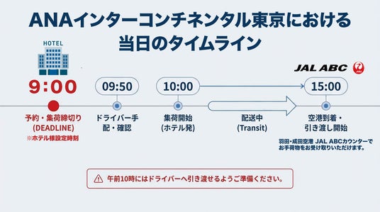 本導入により、同ホテルにご宿泊のお客様は、チェックアウト後に手荷物を空港へ当日配送することが可能となり、最終日も身軽に東京観光やビジネス活動をお楽しみいただけます。