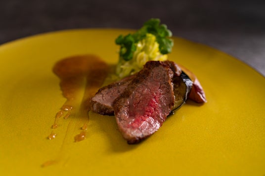 ■黒毛和牛のステーキ ~春キャベツと新玉葱のソース~