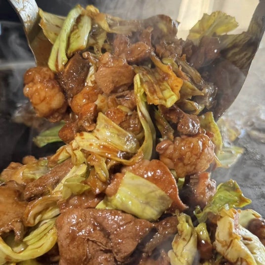 上々国産牛もつ入りホルモン鉄板焼き:900円
