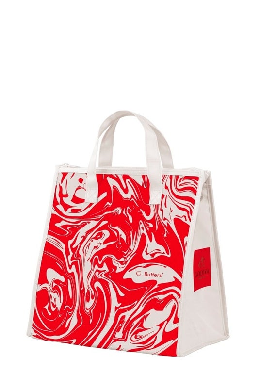 「Gバターズ」の赤の世界を描いた保冷バッグです。