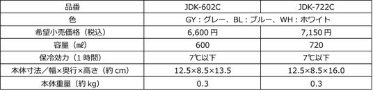 『真空断熱ジョッキ(JDK-602C/722C)』 仕様一覧