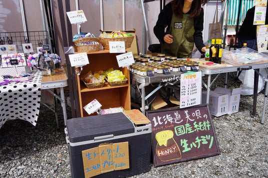 美唄工場で採れる多彩な国産蜂蜜の味比べ体験や、大人気のプリン、豆腐プリンなど、親子で楽しめる食のラインナップによる商品販売、そして日本理化学工業が製造する「キットパス」で窓ガラスや専用のシートを貼った壁やアクリルパネルに自由に思いっきりお絵描きができる体験コーナーを設置。その他にもボードゲームを用意し、美唄の色を楽しみにながら、親子でリラックスでき、地域コミュニティスペースとしての役割を発信しています。