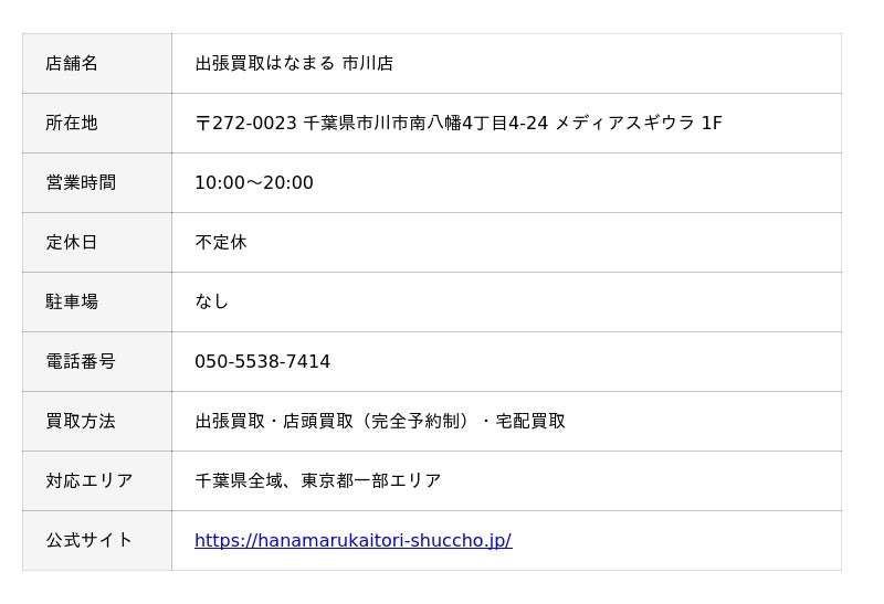 ■ 出張買取はなまる 市川店について(店舗情報)