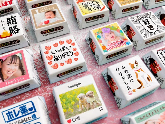 「DECOチョコ」は、世界に1つだけのオリジナル・チロルチョコが作れるサービスです。