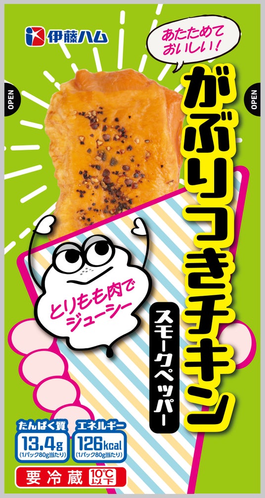 伊藤ハム株式会社は、ワンハンドで食べられるスモーク感がクセになる「がぶりつきチキン スモーク」と「がぶりつきチキン スモークペッパー」を発売します。