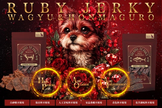 株式会社LEGRA(代表取締役:山浦健太)は、これまで破棄されていた「高級食材の未利用部位」を活用し、ペットの“健康増進”にフォーカスしたプレミアム・ペットジャーキー RUBY JERKY(ルビージャーキー) を開発。