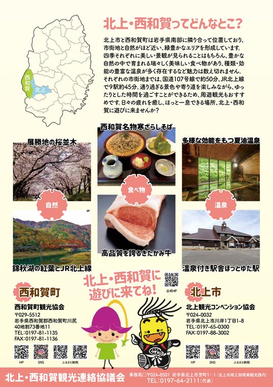 本イベントは、北上市と西和賀町が連携し、地域の特産品や観光資源を首都圏へ発信する取り組みとして、北上・西和賀観光連絡協議会が主催するものです。