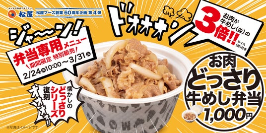 このたび松屋フーズ(本社:東京都武蔵野市、代表取締役社長:瓦葺一利)は、牛めし・カレー・定食・その他丼の「松屋」におきまして、2026年2月24日(火)10時より「お肉どっさり牛めし弁当」を販売開始します。