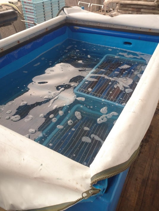 収容量は、魚種に応じて異なりますが、真鯛の場合は専用カゴを使用することで1台あたり約160~200尾の輸送が可能です。