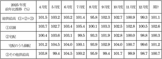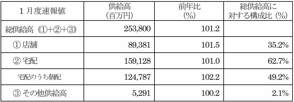 〇1月度の総供給高は、101.2%で前年超えとなりました。