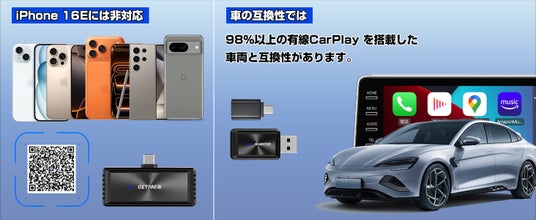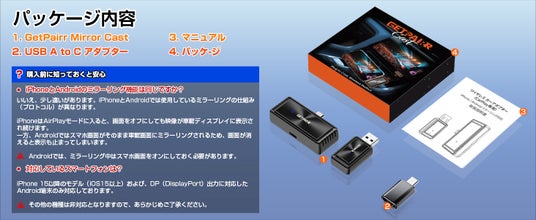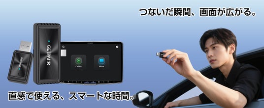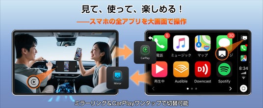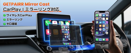 ミラーキャスト(ワイヤレスミラーリング)とCarPlayワイヤレス化を1台で実現する2in1アダプターです。