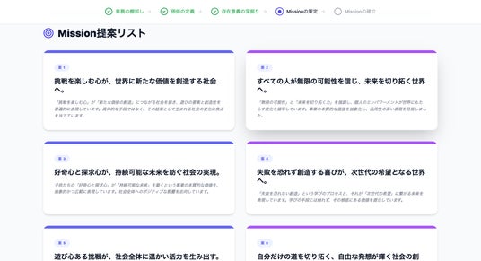 4.Mission案の選択・編集(複数案から選択し、自由にカスタマイズ)