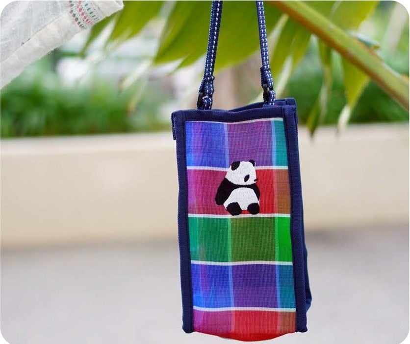 沖縄「Akushu(アクシュ)」パンダ刺?入りボトルホルダー(手提げ)3,960円(ショルダー)4,400円