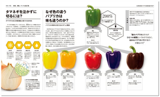 本書はその名の通り、2018年10月に刊行された『料理の科学大図鑑』(A4変形/定価5,060円)のコンパクト版。高価格の大型図鑑ながら、累計7刷、25,000部を売り上げた不動のロングセラー、定番料理本が並製となり、天地、左右、束幅それぞれ約1cm小型化、重量約200g軽量化された「コンパクト版」として、装いを新たに再登場します。