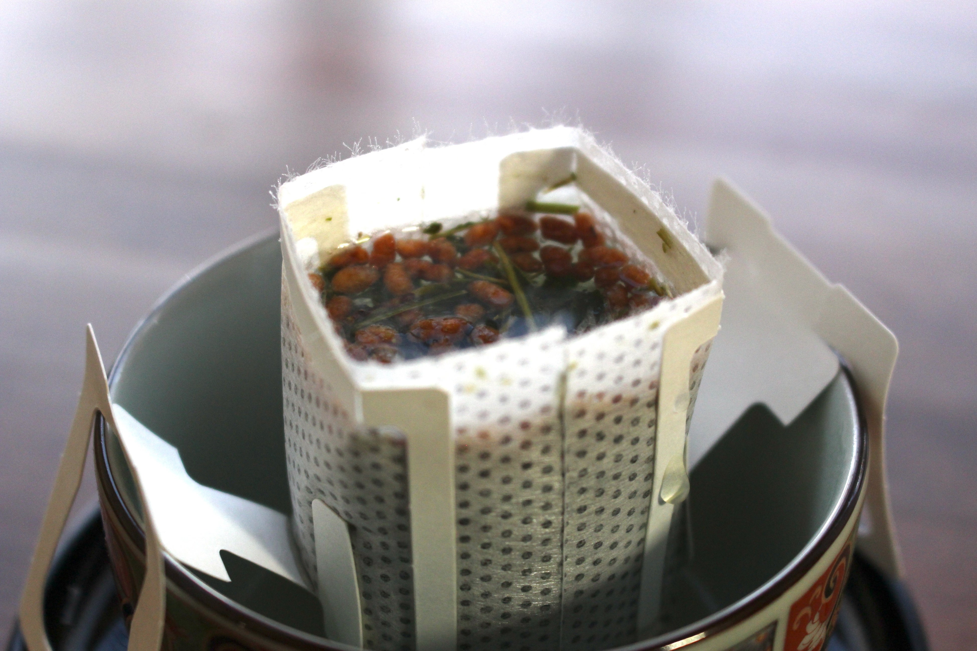 一方、本商品はカップにセットしてお湯を注ぐ構造のため、