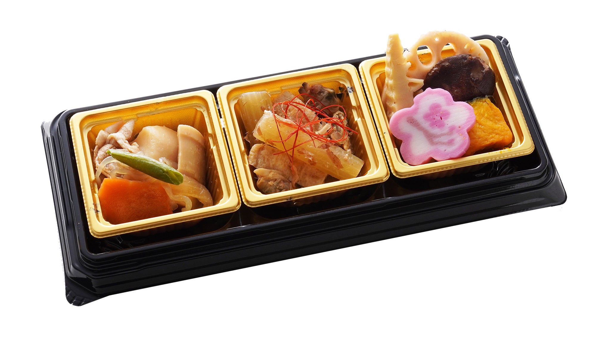 たけのこを使用した春野菜の肉じゃがや、ふきとあさりの煮物など、春にぴったりのおかずをだしがきいた煮物と一緒に彩りよく盛り合せました。