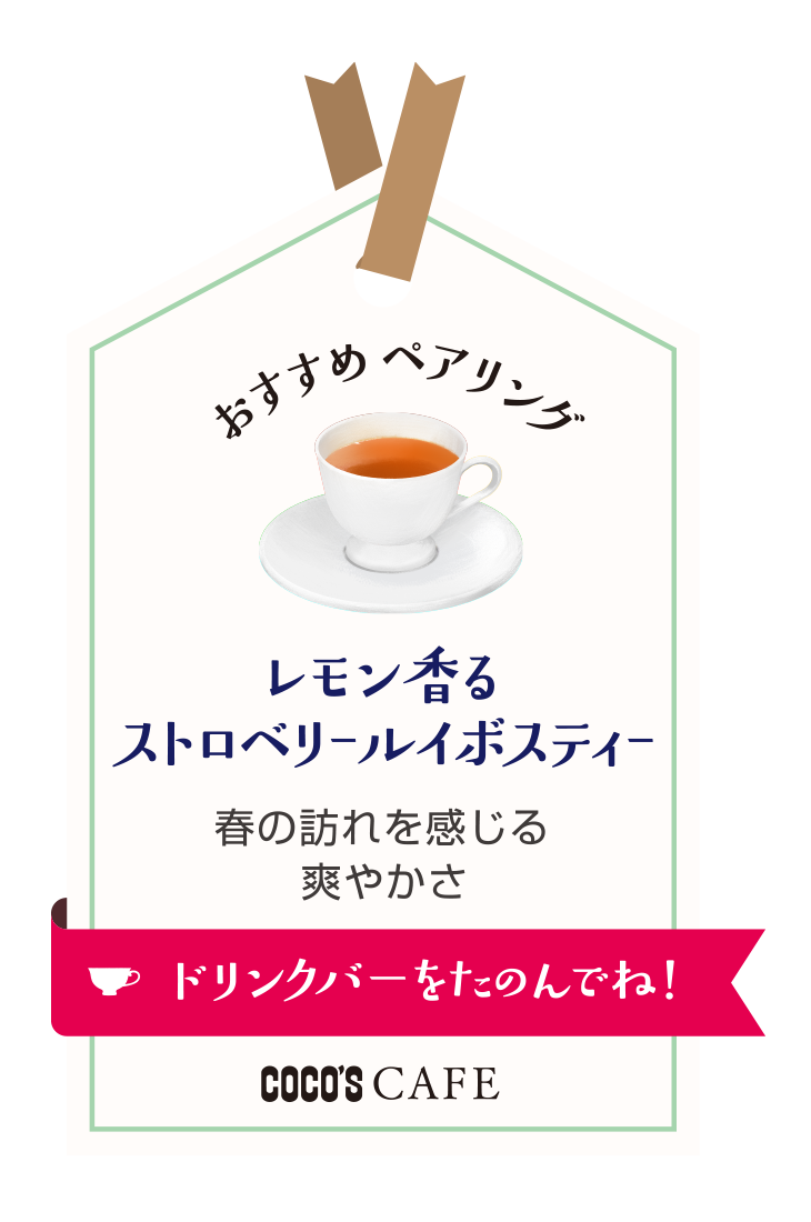 爽やかな風味の「レモン香るストロベリールイボスティー」がおすすめのペアリングです。