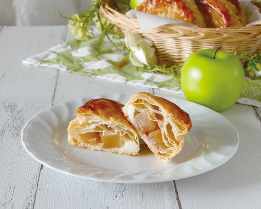 ダイス型にカットした酸味のあるグラニースミス 、爽やかな甘みのヨーグルトクリームをサクサクのパイ生地で包みました。ホットながらもすっきりとした味わいの一品。観光地散策や散歩のお供にぴったりです。
