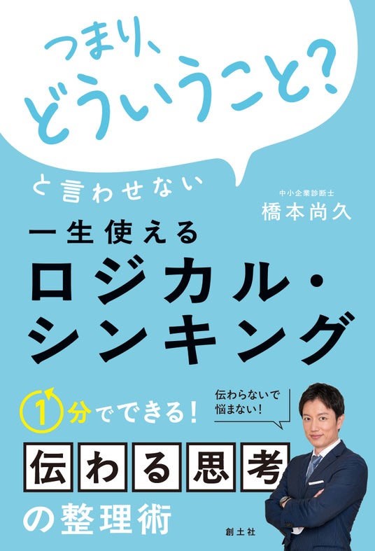 株式会社創土社(本社:東京都渋谷区、代表取締役:星野裕司)は、経営コンサルタント・研修講師の橋本尚久氏による新刊『「つまり、どういうこと?」と言わせない 一生使えるロジカル・シンキング』を2026年3月に刊行いたします。本書は、パナソニックグループ、NECグループ、SMBCコンサルティング、東京商工会議所など多数の企業・団体で年間100本以上の研修に登壇してきた著者が、10年以上の現場経験から体系化した「実務で本当に使えるロジカル・シンキング」の実践書です。「知識としては理解したが、現場で使えない」という多くのビジネスパーソンの声に応え、"思考の補助輪"をコンセプトに、誰でも無理なく始められる小さなステップと習慣化の仕組みを提供します。