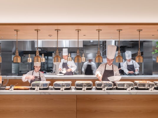 シェフが目の前で調理するオープンキッチン