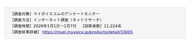 調査結果を掲載・引用いただく場合は、必ず「マイボイスコム調べ」もしくは「マイボイスコム(株)調べ」と表記をお願いいたします。