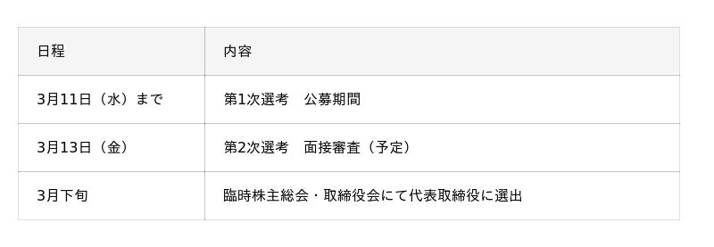 代表取締役 1名公募の実施主体