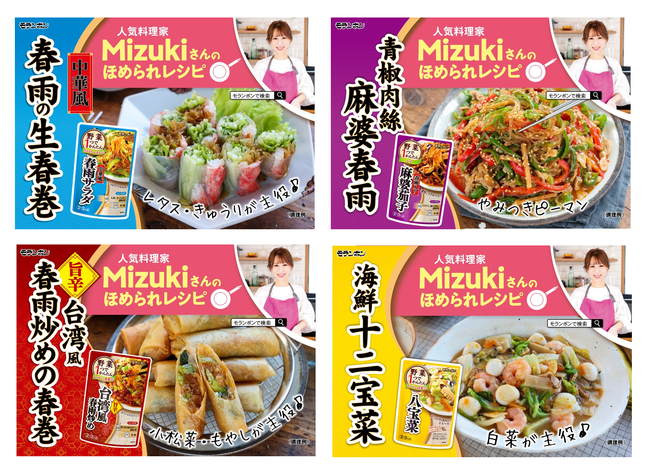 (中華風春雨サラダ/春雨入り麻婆茄子/台湾風春雨炒め/八宝菜)