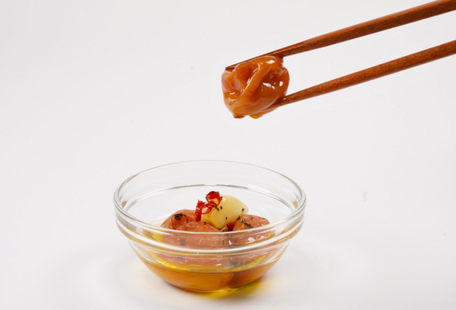 そのまま梅干し単体をおつまみとしてお召し上がり頂けるのはもちろんのこと、梅干しのみならずにんにく・オリーブオイルなど全ての材料を使って様々な料理にも使用できるよう汎用性の高い商品となっており、220gと大容量なのも魅力の一つです。こんがり焼いたバケットの上に乗せたり、チーズを合わせたりするだけで簡単おもてなし料理をご準備することもできます。
