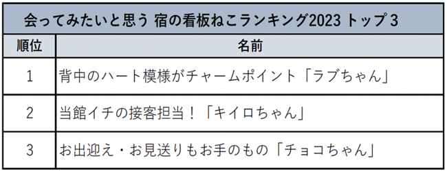 ■『じゃらん』会ってみたいと思う 宿の看板ねこランキング2023 トップ3
