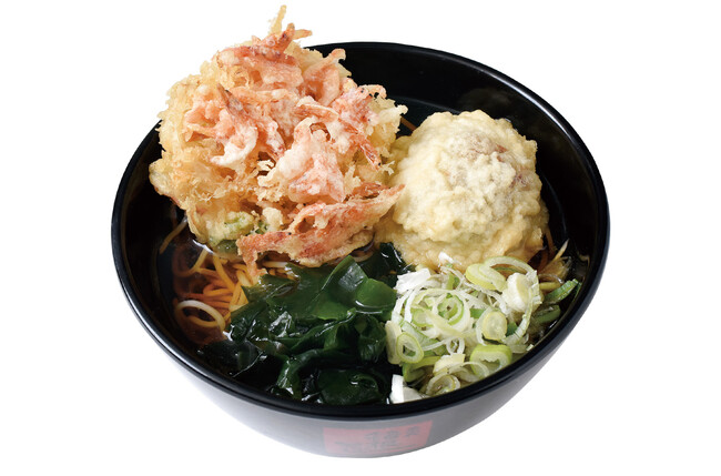 香ばしく彩りもよい桜海老が入ったミニかき揚げ天に、蓮根入りのシャキシャキ食感が特徴のドデカ肉団子天を合わせました。