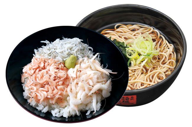 「釜揚げ三種丼セット~しらす・白海老・あきあみ海老~(そば・うどん)」 750円