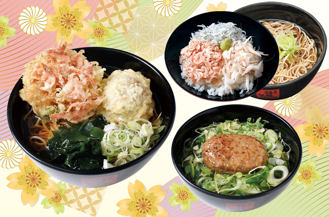 ※「桜海老のミニかき揚げ天とドデカ肉団子天」は名代箱根そば全店で販売いたします。「鶏つくねハンバーグの九条葱そば」および「釜揚げ三種丼セット~しらす・白海老・あきあみ海老~」は、取り扱いのない店舗がございます。