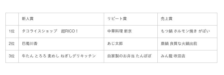 今回で2回目の開催となる「DeAward 2022」では、全国113,000店を超える加盟店舗の中からユーザーレビューや注文数、売上金額、リピーターの割合などを基に、「新人賞」「リピート賞」「売上賞」の3部門の全国ランキングとエリア毎ランキング(北海道、東北、関東、中部、近畿、中四国、九州沖縄)トップ10を発表し、表彰をいたしました。受賞店舗にはトロフィーやステッカーなどさまざまな景品が贈られました。選出されたブランドのみなさま、おめでとうございました。