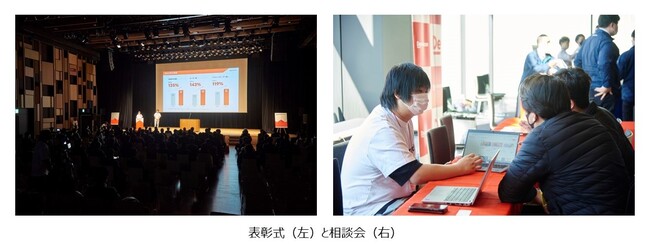 また、今回の「DeAward 2022」は全国の加盟店の皆さまにご参加いただけるよう、オンライン・オフラインを融合させた形式での開催となり、全国から430名以上の方々にご参加いただきました。表彰式の他にも、加盟店の担当者さまによる「ポストコロナにおけるデリバリーの活用方法」をテーマにしたパネルディスカッションや、『出前館』の担当者や飲食事業に関連する企業様との相談ブースの設置など、より多くの加盟店のみなさまとの交流が可能となるようなプログラム実施いたしました。