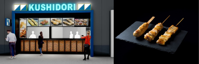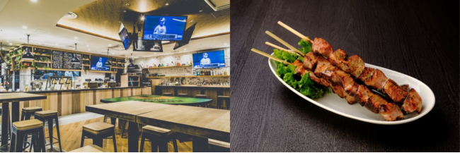 赤×白の店舗カラーから、青×白のファイターズカラーの店構えでオープン。全ての商品がエスコンフィールド限定で、職人が1本1本、丁寧に焼き上げるジャンボ焼き鳥をはじめ、野球観戦にピッタリな商品を取り揃えております。