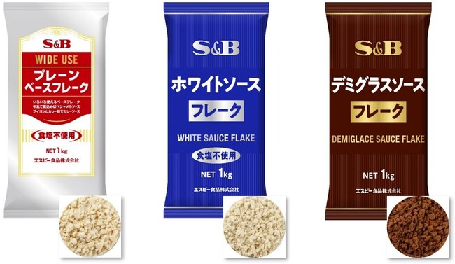 エスビー食品株式会社は、さまざまな料理にアレンジできるベーシックなソース用フレーク「プレーンベースフレーク1KG」「ホワイトソースフレーク1KG」「デミグラスソースフレーク1KG」を新発売します。