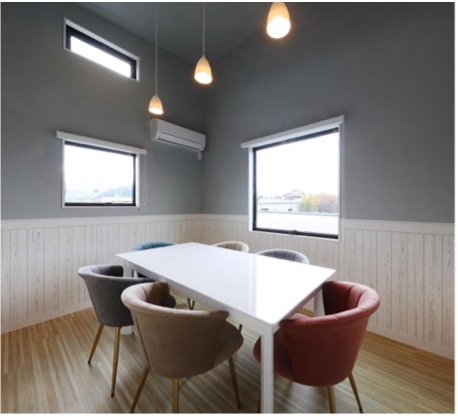 「社内に商談スペースがない」、「外出途中に打合せがしたい」、「八女市内に個室で打合せできるような場所が見つからない」そんな方々のニーズにお応えして、個室を貸しミーティングスペースとして開放いたします。収容人数は6~8名。Wi-Fi、C端子コンセントも備えています。ご利用料は1時間:50円+ワンオーダー制。※