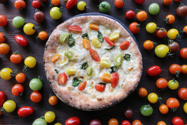 サンクトガーレン タップルームでは2023年2月22日(水)より、1枚に3~5色(種)のミニトマトを使用した「カラフルトマトの白マルゲリータ」も同時発売します。