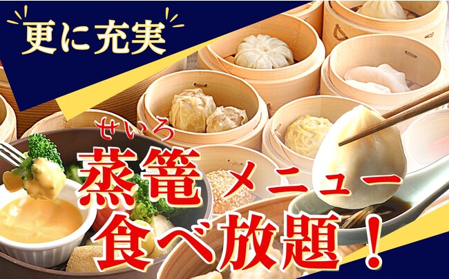 スタイリッシュな空間で、バラエティー豊かなお料理が楽しめる「ブッフェ エクスブルー ららぽーと横浜店」。この度、2023年2月21日(火)より、飲茶などの熱々『蒸篭(せいろ)メニュー』に新たなラインナップが登場いたしました!